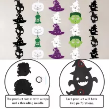This hanging pendant is more than just a decoration—it’s an instant mood-setter for your Halloween celebrations. Whether you’re hosting a spooky gathering or simply getting into the Halloween spirit, this fun and festive string pendant adds the perfect touch of charm to your home. The vibrant pumpkins, eerie ghosts, and classic witch hats give your yard or party area an exciting, whimsical vibe that’s sure to impress everyone who stops by.