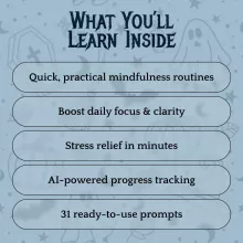 Unlike generic meditation eBooks, this guide focuses on a Mini-Meditation Challenge for October, giving you structure, variety, and a balance of traditional wisdom with modern technology. You’ll not only learn the basics but also discover how to use AI-powered tools to track progress and personalize your mindfulness journey. By the end of the month, you’ll have built a strong habit that supports stress relief, focus, and emotional well-being long after October ends.