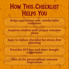 • Brainstorm Costume Ideas – Get creative with classic, pop-culture, or funny/pun-based costumes like pumpkins, superheroes, or tacos.