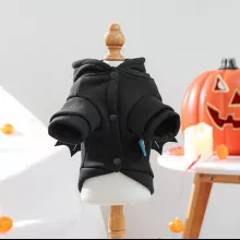 This hoodie is made from high-quality polyester, offering warmth without adding extra weight. Its soft fleece interior keeps pets cozy in cooler weather, while the lightweight bat wings give a dramatic effect without restricting movement. The button closure makes it easy to put on and take off, saving you and your pet from the usual struggle with costumes. Available in a classic black color, it pairs perfectly with the Halloween spirit and adds a stylish edge to your pet’s wardrobe.