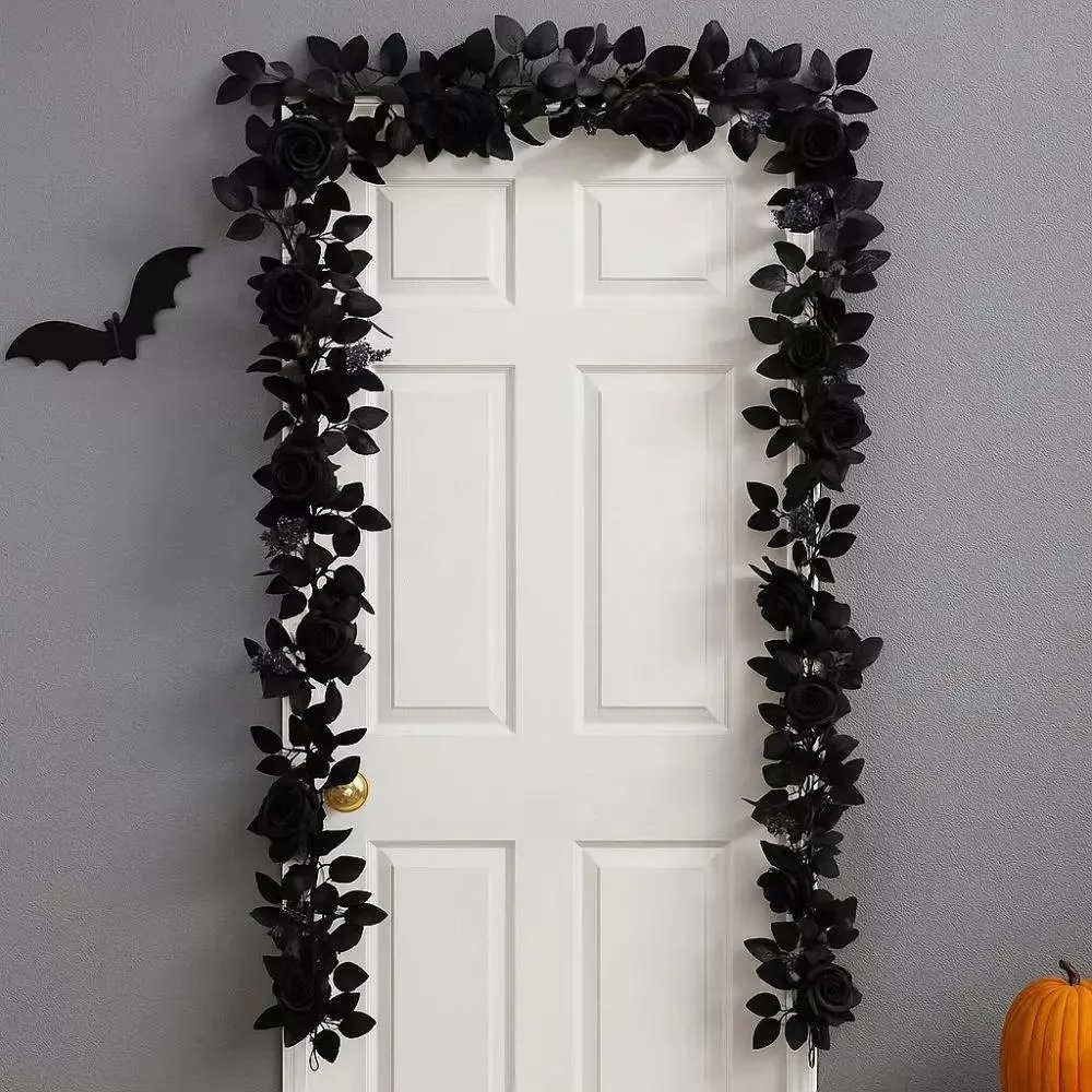 Black Halloween Rose Vine Garland with Realistic Artificial Flowers 69in
