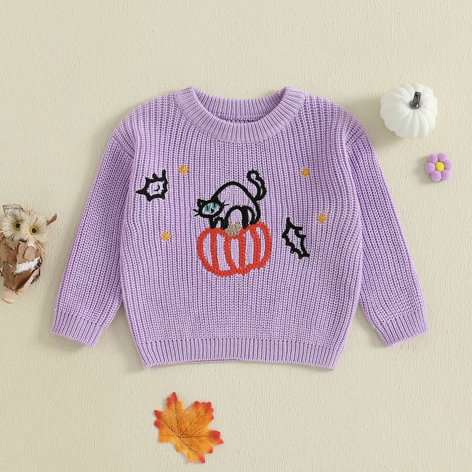 Girls Pumpkin Sweater Long Sleeve Crew Neck Warm Winter Halloween Outfit