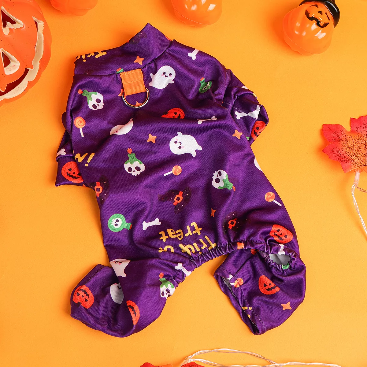 Halloween Dog Pajamas – Purple Puppy Jumpsuit with Four-Legged Pants