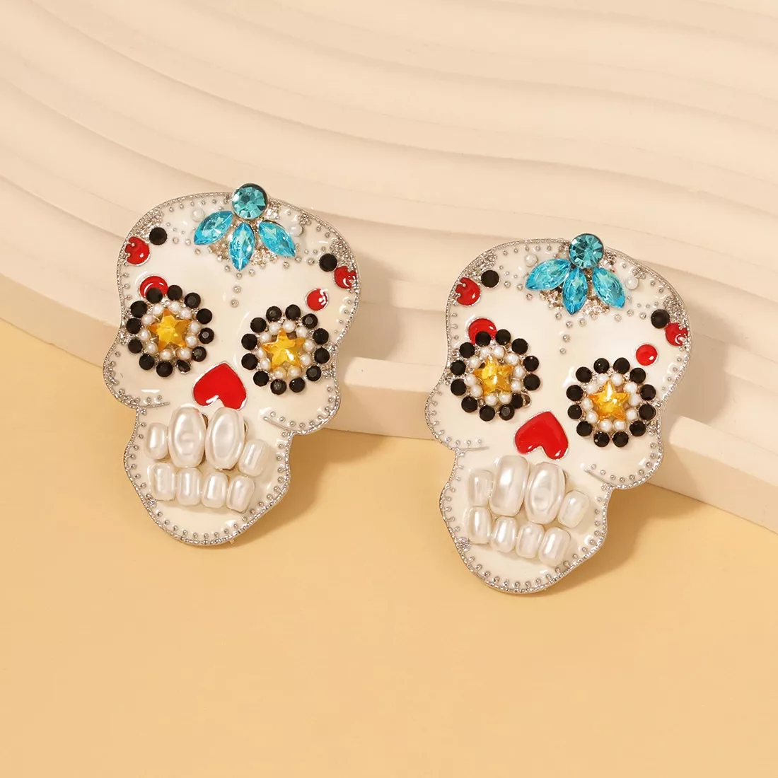 Personalized Retro Halloween Skull Pearl Earrings for Women