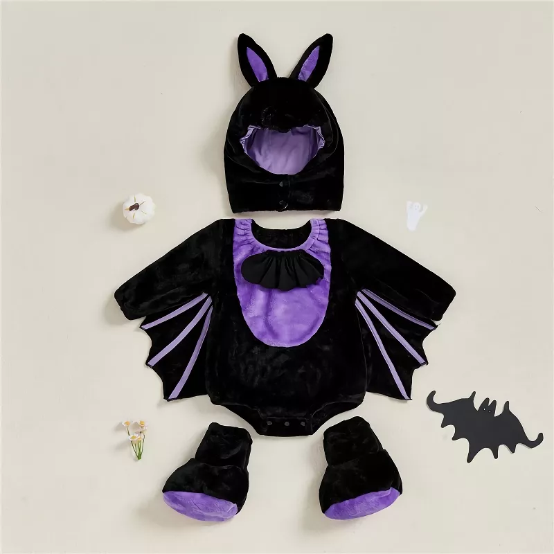 Infant Baby Bat Halloween Costume 3-Piece Set – Romper, Foot Covers, Hat