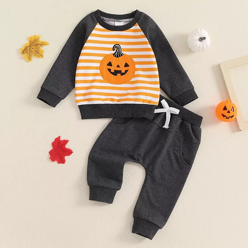 Halloween Toddler Pumpkin Print Sweatshirt & Pants Set for Boys & Girls