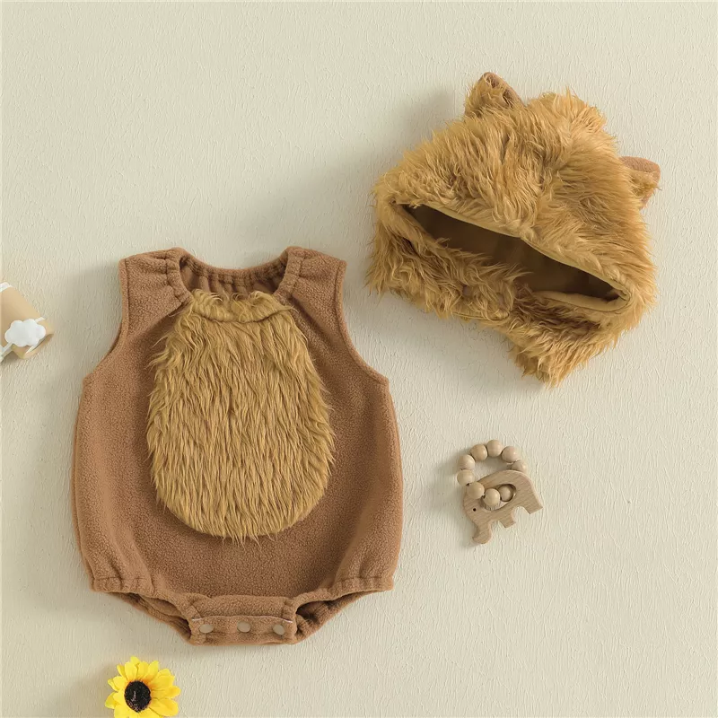 Adorable Baby Halloween Wolf Costume – Plush Romper with Hat