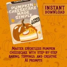 Turn your kitchen into a cozy autumn bakery with Pumpkin Cheesecake Made Simple — the ultimate digital guide for mastering a pumpkin cheesecake recipe. Whether you’re a beginner baker or a seasoned dessert lover, this easy-to-follow guide walks you through every step of creating a creamy, spiced pumpkin cheesecake that impresses every time. With clear instructions, creative topping ideas, and even fun AI prompts for styling and sharing your masterpiece online, this guide makes baking feel effortless and inspiring.