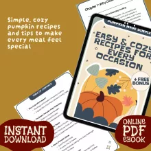 Bring the warm, comforting flavors of pumpkin into your kitchen with Pumpkin Made Simple: Easy & Cozy Recipes for Every Occasion. This digital eBook is your go-to companion for transforming everyday meals into something special, without the stress. Perfect for fall or any season you’re craving cozy vibes, this guide is filled with easy pumpkin recipes that are as approachable as they are delicious. Whether you’re new to cooking or just looking to spark creativity in your kitchen, this eBook makes pumpkin cooking fun, fast, and foolproof.