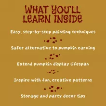 • Learn painting methods that extend the life of your pumpkins indoors and outdoors.