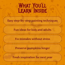 Ready to turn your pumpkins into works of art? Download Pumpkin Picasso: A Fun & Creative Guide to Pumpkin Painting today and start your pumpkin painting routine with confidence and creativity. Add it to your cart now and make this Halloween season truly unforgettable!