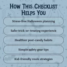 - Before You Go: Plan your route, set a curfew, check costumes for visibility, choose safe footwear, and prep snacks.
