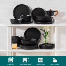 Whether you’re hosting a family dinner or enjoying a quiet meal alone, this 24-piece reactive glaze stoneware set brings beauty and functionality to your table. The elegant, rustic design adds a warm, inviting touch to any setting. With its durability, oven-safe feature, and eye-catching finish, this set is more than just dinnerware – it’s an experience.