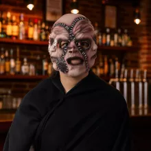 Bring nightmares to life with the Three-Sided Stitched Human Face Mask. Order now and become the walking scare that Halloween needs!
