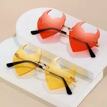 Step into the spotlight with confidence. Add these Rimless Devil Ear Heart Sunglasses to your collection and let your personality shine through. Pick your favorite color, put them on, and watch the compliments roll in. It’s time to have fun with fashion—don’t wait to grab your pair today!