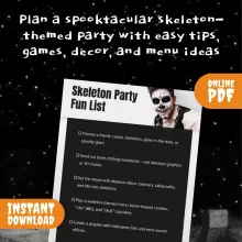 Make your next Halloween or skeleton-themed celebration unforgettable. Download the Skeleton Party Fun List now and start planning a party your guests will rave about. Don’t leave your spooky bash to chance—make it bone-chillingly perfect with this all-in-one guide.