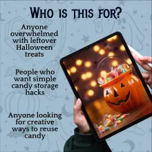 This digital guide is designed for families with kids, holiday lovers, and anyone who finds themselves staring at heaps of leftover Halloween candy. If you want to avoid waste, enjoy your candy in creative new ways, and keep everything fresh and organized, this is the resource for you.