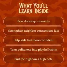 Perfect for parents guiding kids through their trick-or-treating adventure, families who want to add kindness and connection to the spooky fun, or hosts looking to make visitors feel welcome. It’s also a great teaching tool for educators and community leaders who want to emphasize the importance of social micro-habits during trick-or-treat.