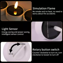 - Solar-Powered: Equipped with a built-in solar panel, these tea lights absorb solar energy during the day and automatically light up at night, making them hassle-free and energy-efficient.