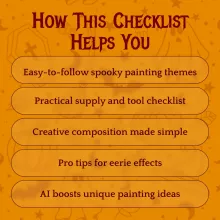 Unlike generic tutorials, the Spook-tacular Halloween Painting Checklist blends traditional painting techniques with modern twists like AI-powered prompts. This means you’ll always have fresh ideas and creative support at your fingertips. It’s not just a guide—it’s your personal roadmap to creating spooky art pieces that everyone will admire.