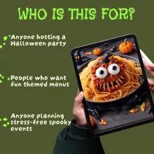 Get ready to impress your guests with Spooktacular Bites: Your Ultimate Guide to Halloween Party Meals — a digital eBook packed with delightfully eerie Halloween party meal ideas. Whether you’re planning a creepy, comical, or classic haunted feast, this guide will help you craft an unforgettable spread that looks spooky, tastes incredible, and delights every partygoer. Ideal for hosts who love adding a creative twist to their celebrations, this digital download will transform your Halloween party into a feast your guests will rave about.