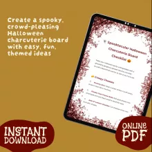 Transform your Halloween celebration into a frightfully fun feast with the Spooktacular Halloween Charcuterie Board Checklist. This instant digital download is your ultimate guide to building a Halloween charcuterie board that’s as eerie as it is delicious. Packed with spooky ideas for cheeses, meats, fruits, veggies, sweets, and decorative touches, this checklist takes all the guesswork out of planning. Whether you’re hosting a kids’ party, a haunted house gathering, or an elegant adults-only soirée, this printable guide ensures your spread will wow every guest.