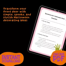 Looking for creative halloween door decoration ideas that will wow trick-or-treaters and impress your neighbors? The Spooktacular Halloween Door Checklist is your ultimate step-by-step digital guide to crafting the perfect festive entryway. Whether you prefer a spooky haunted-house vibe, a playful pumpkin display, or a chic and elegant seasonal look, this checklist makes decorating your front door simple, fun, and stress-free. Ideal for busy parents, Halloween enthusiasts, or anyone who wants to add instant curb appeal, this digital download will help you plan, design, and execute a door display that everyone will remember.