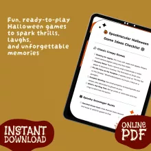 The Spooktacular Halloween Game Ideas Checklist is your secret weapon for hosting a Halloween bash everyone will rave about. Download it instantly, print or view digitally, and watch your guests light up with excitement as they dive into these spooktacular games. Donāt leave your Halloween fun to chanceāmake it unforgettable!