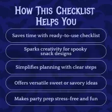If you want to serve fun, easy Halloween snacks without the overwhelm, this checklist is made for you. Download Spooktacular Snacks: A Fun Guide to Halloween Treats today and start planning a snack table that’s frightfully delightful and stress-free!