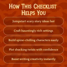 Step into the shadows and give your imagination something to scream about. Download the Spooktacular Story Starter Checklist: 10 Terrifyingly Good Ideas now and transform your scary story ideas into haunting masterpieces that will keep your readers up all night.