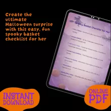 Looking for the perfect way to surprise your girlfriend, wife, or best friend this Halloween? The Spooky Basket Checklist for Her is a beautifully designed digital download that takes all the guesswork out of creating a thoughtful, festive, and fun spooky basket. Whether you’re aiming for something cute, cozy, romantic, or delightfully spooky, this checklist is your go-to guide for building a basket she’ll remember long after the season ends.