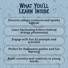 This digital guide isn’t just another spooky read—it’s packed with engaging facts, interactive prompts, and creative exercises that kids will love. It’s the perfect combination of fun and education, designed to keep kids entertained while encouraging curiosity and exploration. Whether you’re looking to add some thrill to your Halloween season or simply want to learn more about the world’s creepiest creatures and strange phenomena, this guide offers it all. Plus, the interactive AI prompts make it a fun, hands-on experience for kids of all ages.