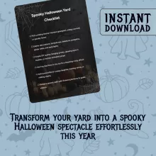 Bring the thrill of Halloween right to your doorstep with the Spooky Halloween Yard Checklist. This ultimate digital checklist is packed with creative tips and actionable steps to turn your outdoor space into a jaw-dropping, hair-raising spectacle. Whether you’re aiming for a haunted graveyard, a creepy carnival, or a mysterious spooky forest, this guide has everything you need to create an unforgettable Halloween experience for trick-or-treaters and guests alike.
