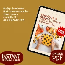 Don’t let a busy schedule keep you from making Halloween unforgettable. Download Spooky in a Snap: A 5-Minute Craft-a-Day Halloween Plan now and enjoy a week of effortless, spooky fun that your whole family will love. Turn five minutes a day into memories that last a lifetime!