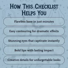 This checklist is designed for anyone who loves dressing up for Halloween, spooky events, cosplay, or costume parties. It’s perfect for makeup beginners who want clear guidance and for advanced enthusiasts who don’t want to miss a single dramatic detail. Unlike other generic guides, the Spooky Makeup Mastery Checklist is tailored to spooky, Halloween-inspired looks and includes both traditional makeup steps and modern digital tools for inspiration.
