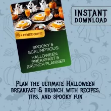 Start your spooky season right with Spooky & Scrumptious: Halloween Breakfast & Brunch Planner, a digital eBook crafted to help you create unforgettable festive meals. Whether you’re hosting a Halloween brunch party, surprising your kids with themed pancakes, or simply want to elevate your seasonal mornings, this guide gives you everything you need—from quick recipes to creative presentation tips—to make your table a hauntingly delightful experience.
