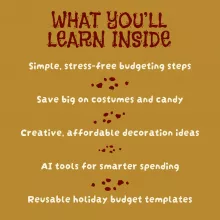 Unlike generic budgeting guides, Spooky Smart Spending blends real-world money-saving strategies with modern tools like AI prompts and digital trackers. It’s not just about telling you to “spend less”—it gives you creative ways to celebrate without compromise, plus a reusable Halloween Budget Breakdown Worksheet that makes planning easy year after year.