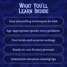 This guide is ideal for parents, teachers, librarians, camp leaders, and anyone who wants to entertain children with safe spooky fun. Unlike other eBooks, it combines storytelling techniques with innovative AI-powered prompts—making it a unique resource you won’t find anywhere else.