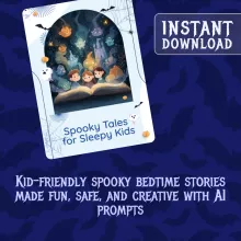 This guide is perfect for parents who want to turn bedtime into a cherished ritual, teachers looking to add creative storytelling to their classroom, and caregivers who want to introduce kids to spooky fun without fear. Unlike other guides, Spooky Tales for Sleepy Kids combines practical storytelling tips with modern AI prompts, ensuring you always have fresh, engaging stories at your fingertips.