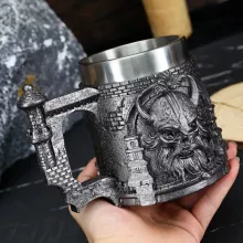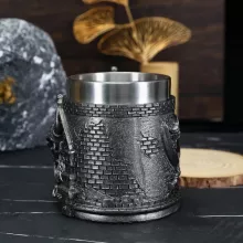 The combination of ornate craftsmanship and practical design sets this mug apart. It’s not just about looks—the stainless steel lining keeps your drink at the right temperature and makes cleaning easy. Each detail, from the sword hilt to the menacing skull, is carved with care to give an authentic, aged look without compromising on comfort or usability.