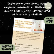 Transform your home into a serene yet delightfully eerie retreat with The Cozy & Spooky Checklist: Organic Minimalist Halloween Decor. This beautifully curated digital download is your go-to guide for creating a hauntingly cozy atmosphere without the clutter. Designed for lovers of slow living, neutral tones, and nature-inspired design, this checklist blends organic textures and subtle spooky accents for a truly elevated seasonal look. Instead of bold orange chaos, you’ll embrace understated charm and peaceful Halloween ambiance.
