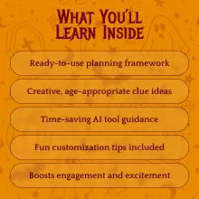 - Chapter 3: Using AI to Boost Creativity and Efficiency – Use AI tools and prompts to quickly generate puzzles, visualize your hunt, and save hours of prep time.