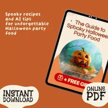 Turn your next Halloween gathering into a frightfully fun event with The Guide to Spooky Halloween Party Food. This digital download is packed with easy-to-follow recipes, creative ideas, and presentation tips that will wow your guests. Whether you’re hosting a family-friendly evening, a classroom party, or an adults-only spooky bash, this guide will help you serve dishes that are as eerie as they are delicious. With a mix of simple DIY snacks, creepy desserts, and modern AI-powered menu ideas, you’ll never run out of spooky halloween party food inspiration.