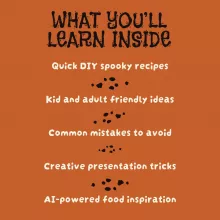 - Chapter 4: Using AI to Plan, Create, and Impress – prompts, tips, and tricks for generating spooky menu ideas.