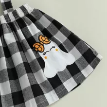 Make your little one the star of Halloween with this charming 2-piece toddler girl outfit. The set includes a solid-color long sleeve top and a ghost-pattern plaid suspender skirt that perfectly blends cuteness with festive spirit. Soft, breathable, and comfortable, this outfit is designed for all-day wear, whether trick-or-treating, attending a Halloween party, or posing for family photos.