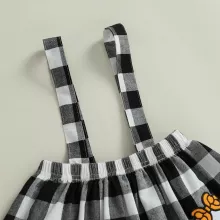 Whether it’s trick-or-treating, school parties, or family gatherings, this outfit is the perfect choice for capturing memorable moments. Its timeless plaid design means it can also be worn as a stylish fall outfit, making it a versatile addition to your child’s wardrobe.