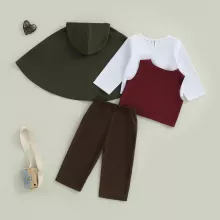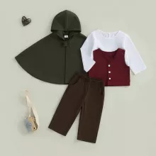 Crafted with care from a soft blend of 95% polyester and 5% elastane, this outfit ensures both durability and flexibility. The round neck top keeps it casual yet polished, while the elastic waistband on the pants makes dressing easy and comfortable for active toddlers. The vest and cape add a unique touch, instantly upgrading the outfit to formal wear without sacrificing comfort.