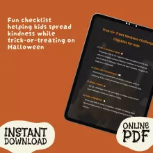 Make this Halloween unforgettable by helping kids embrace compassion and joy. Download the Trick-Or-Treat Kindness Challenge for Kids today and start creating memories that go beyond candy bags—memories filled with kindness, gratitude, and connection. Click “Add to Cart” now and let the kindness adventure begin!