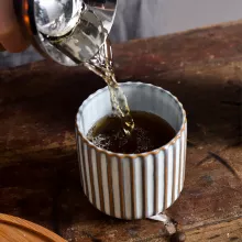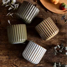 Vertical Striped Ceramic 180ml Teacup – Small Sake, Coffee, & Sushi Mug