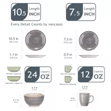 - Versatile Dining: With a complete set that includes dinner plates, dessert plates, cereal bowls, and mugs, this set is perfect for a wide variety of meals, from appetizers to desserts, coffee to cereal.